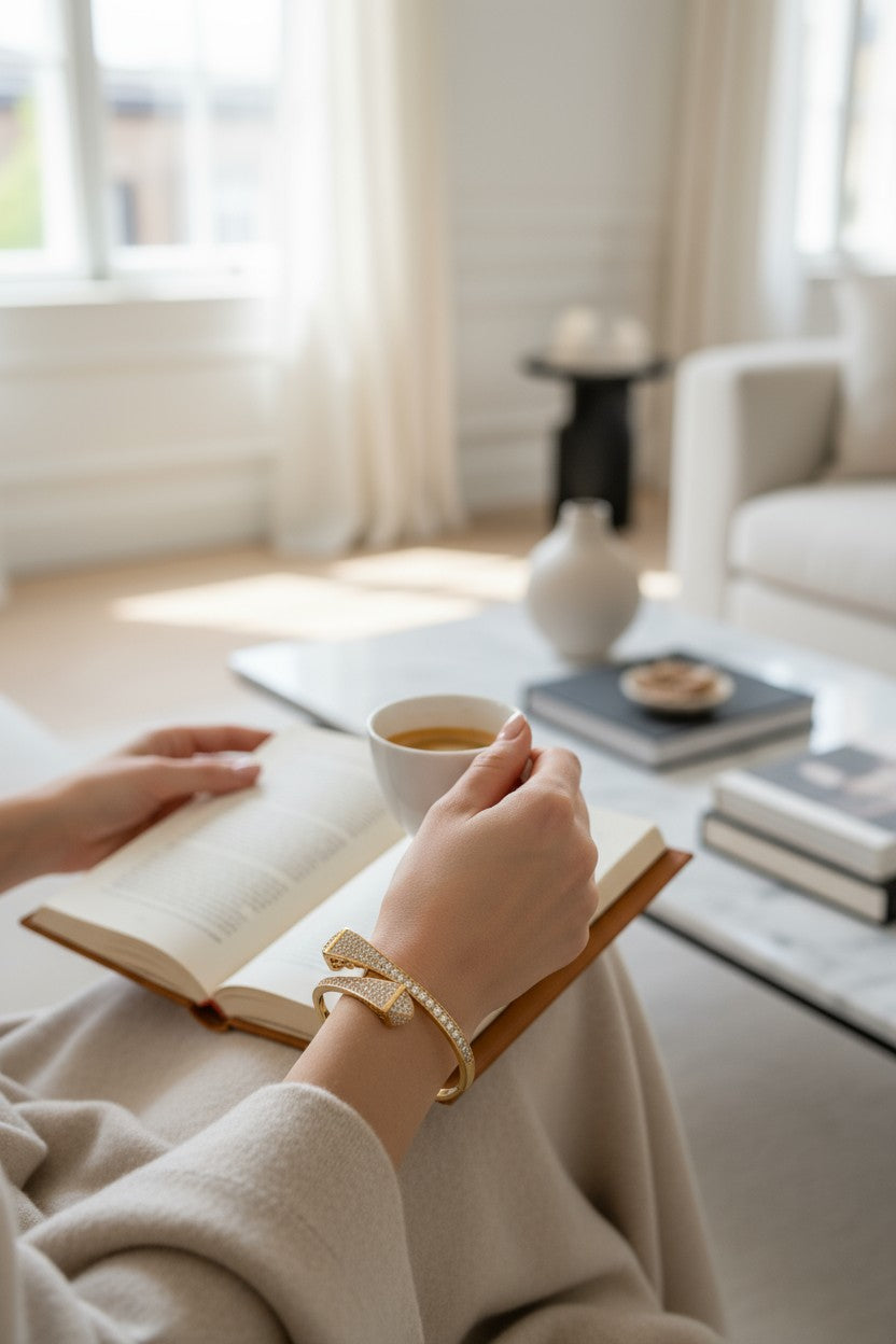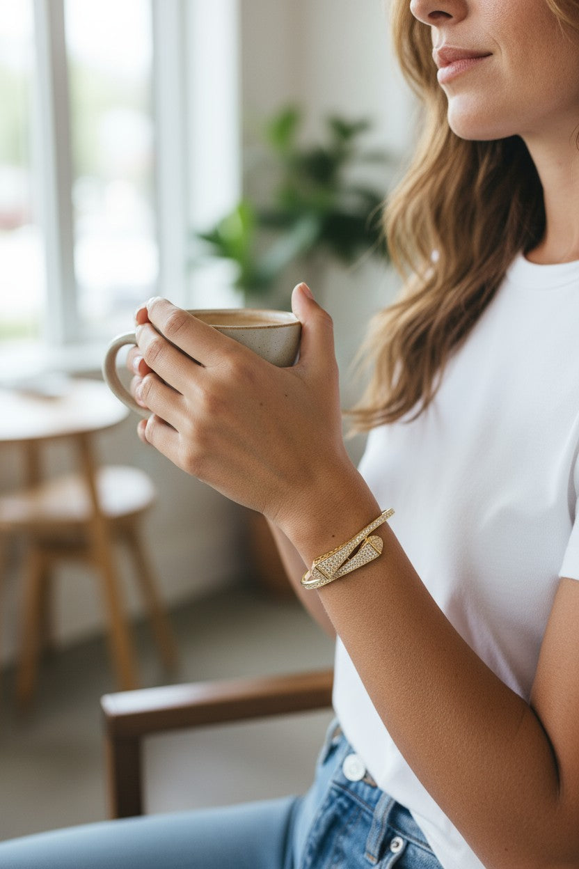 Elegant Gold Plated Bangle with Crystal Pave Stones